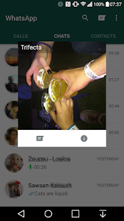In the other updates, when you tapped the profile or group image of any conversation, you got an overlay window with an expanded image and options to view info or open the chat. In order to perform actions on a contact or group chat, you had to long-tap on the name/last message part of the screen to get a list of actions.
